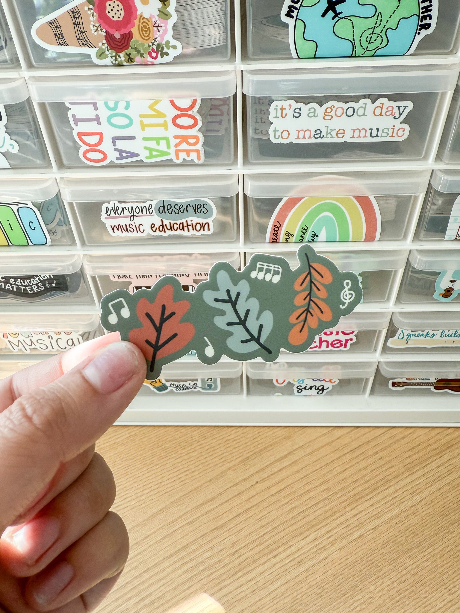 If your fall days look like feeling the warmth of a bonfire, watching the leaves fall, and listening to the wind flicker in and out of the trees, you'll need this Autumn Leaves sticker in your life! Perfect for a pumpkin patch or just cozying up at home, this shirt ties in a subtle touch of music to the crisp autumn season.
