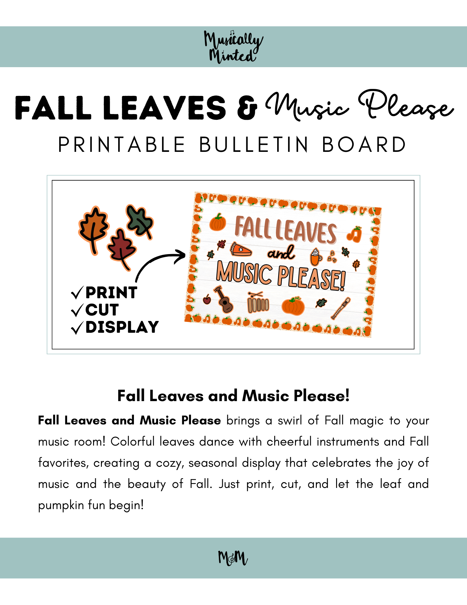 Fall Leaves and Music Please: Bulletin Board Set | Music Class Decor DIGITAL DOWNLOAD
