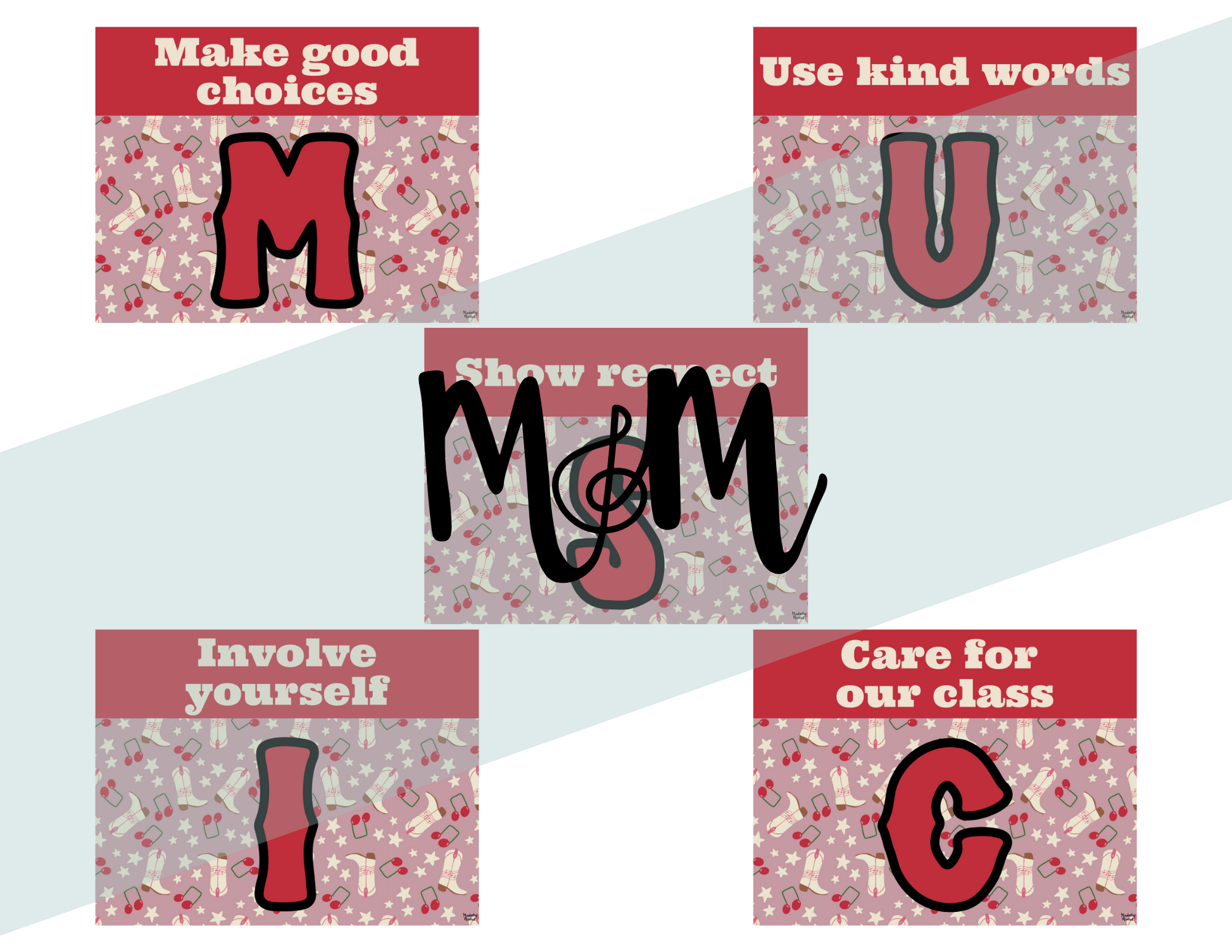 Create a positive, consistent, and beautifully coordinated classroom environment with these Music Classroom Expectations Posters! Designed with a hand-drawn Pink Cowgirl background, these posters match perfectly with other Musically Minted decor, bringing a cohesive and calming aesthetic to your space.