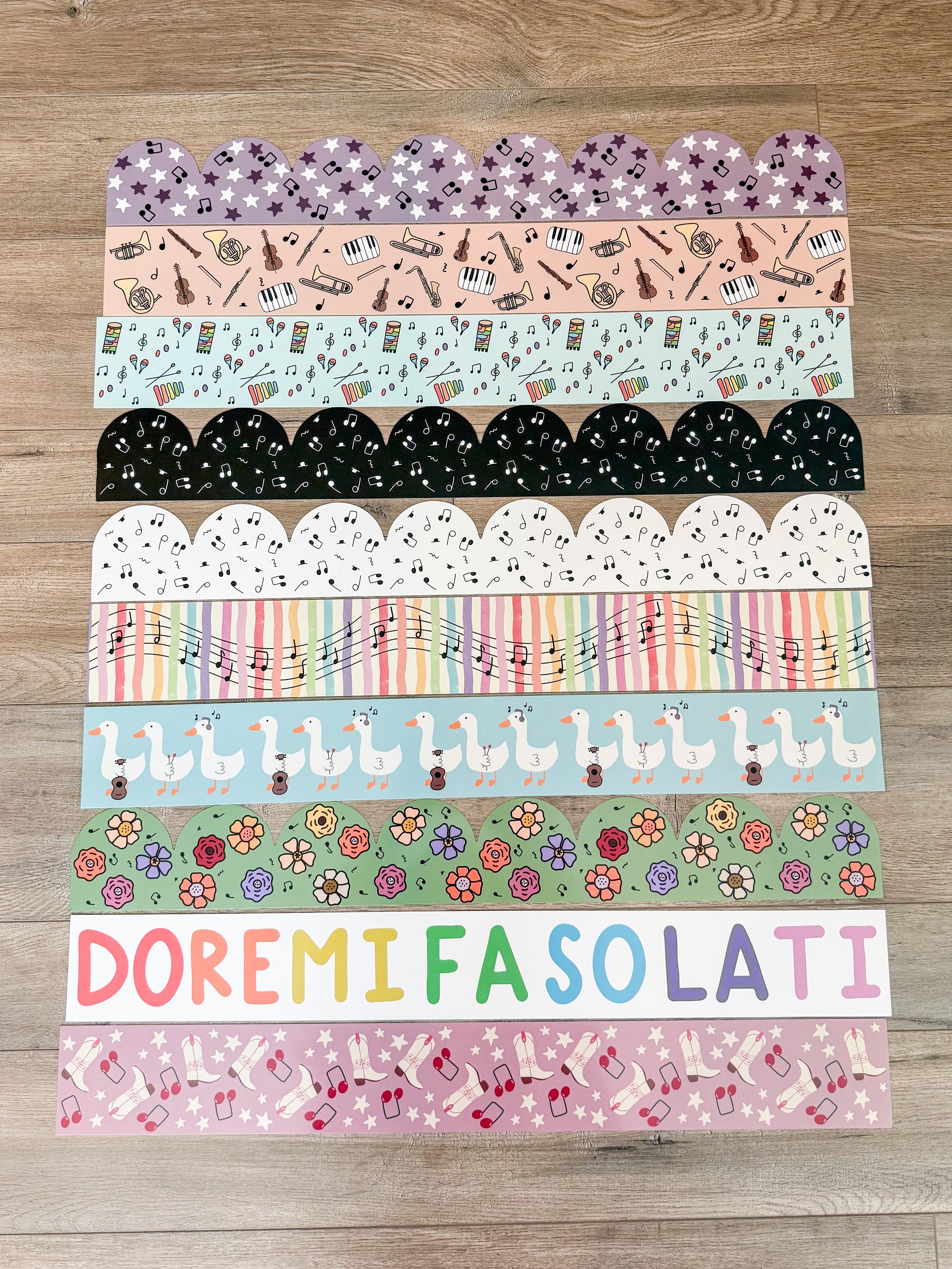 Nothing is classier than black tie. Start the new year right with a clean cut look of this black and white music border, perfect for dressing up classrooms of any age and discipline.