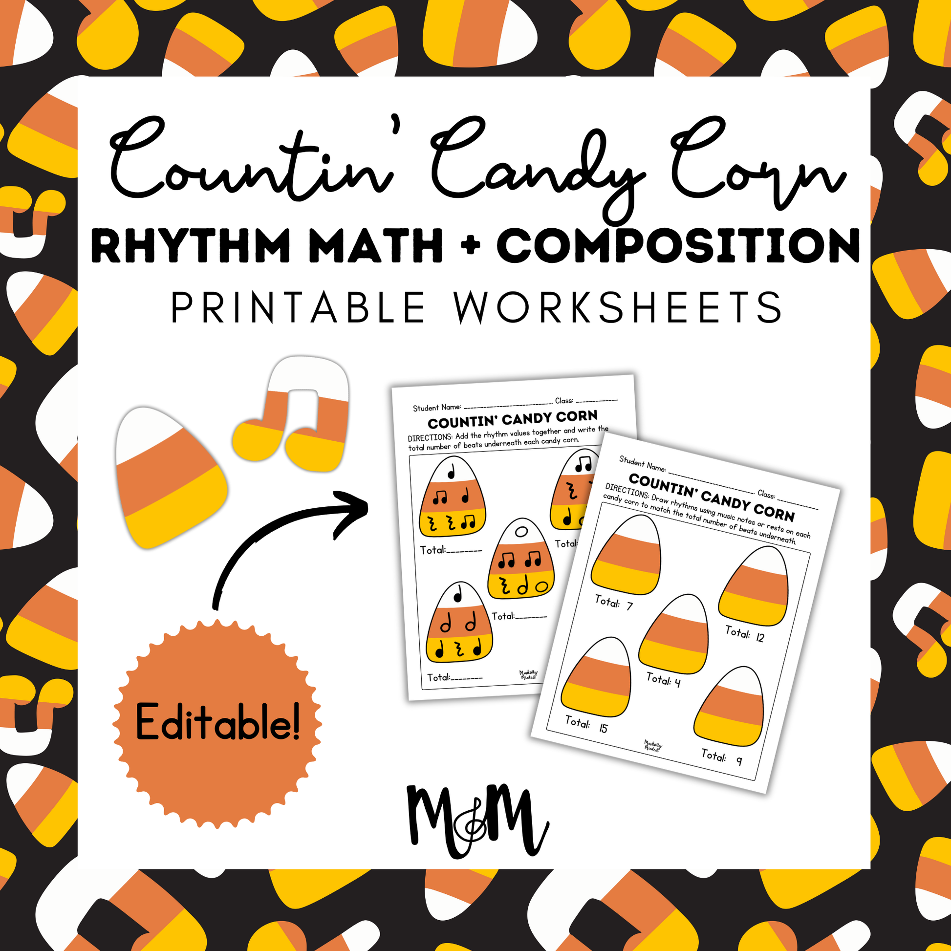 Countin' Candy Corn: Rhythm Math Worksheet | Music Class Printable Activity DIGITAL DOWNLOAD