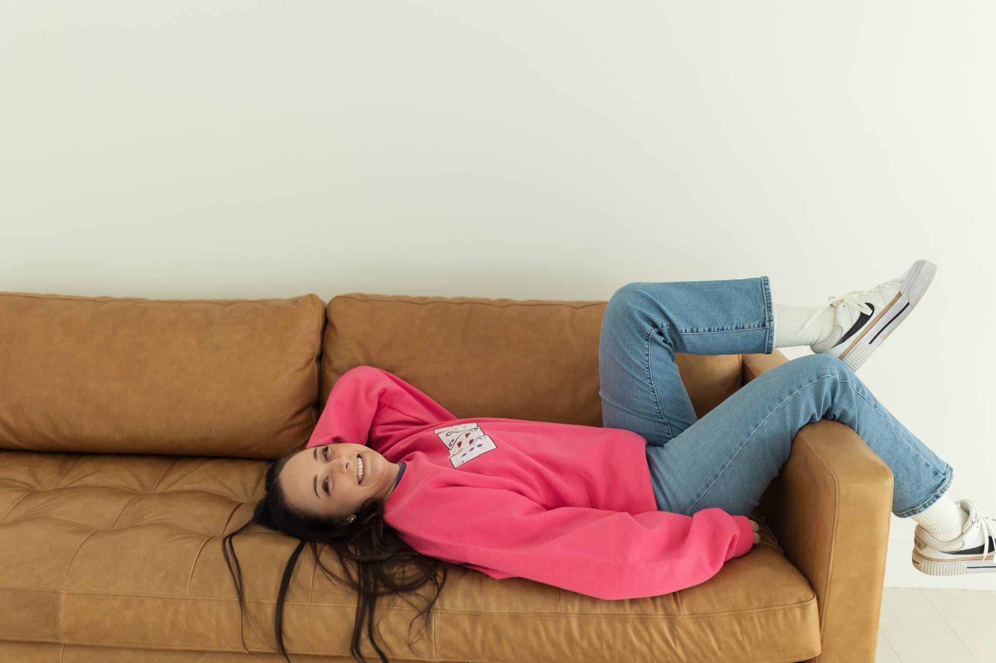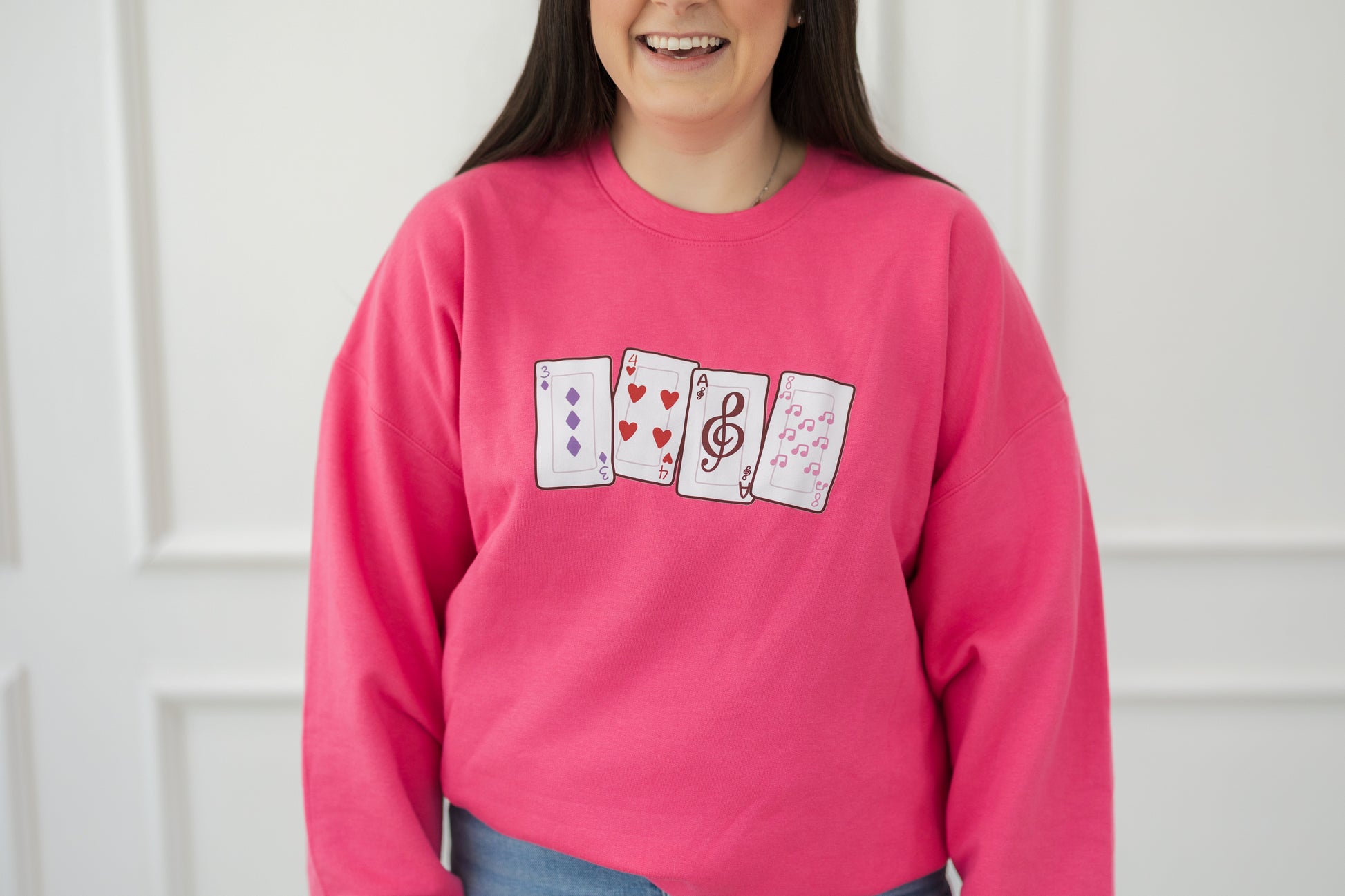 Shuffle love into your wardrobe with this charming Deck of Cards Sweatshirt. Dressed in soft pink hues perfect for Valentine's Day, this cozy pullover features a playful card-themed design that strikes the right note.