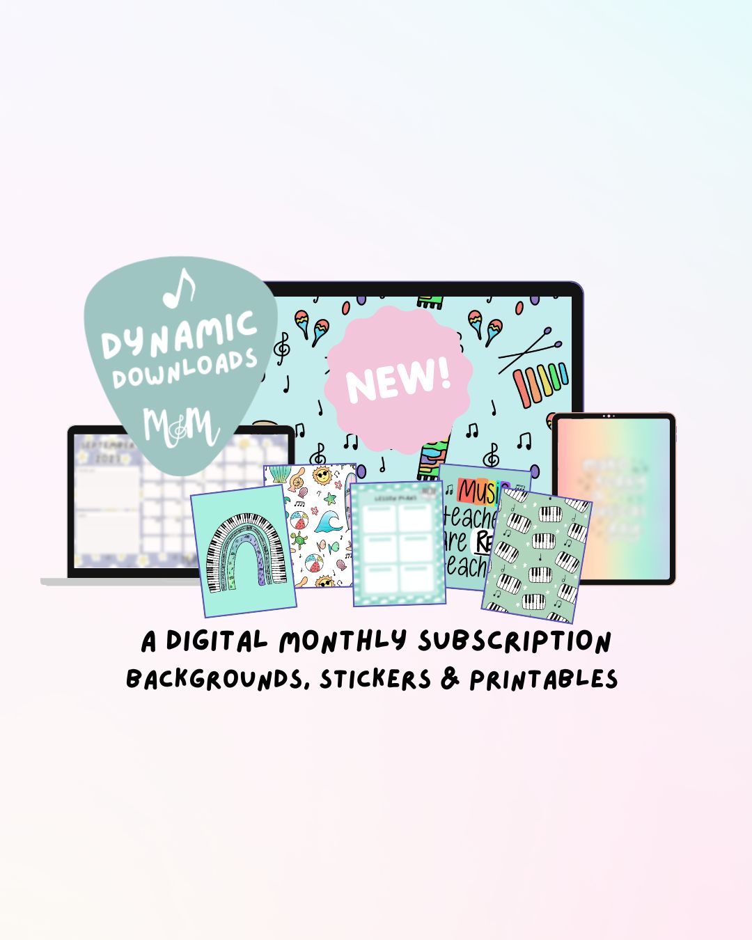 Dynamic Downloads is a monthly subscription pack of music themed digital wallpapers, stickers and printable straight to your inbox! Each month will have a special theme with exclusive designs just for subscribers!