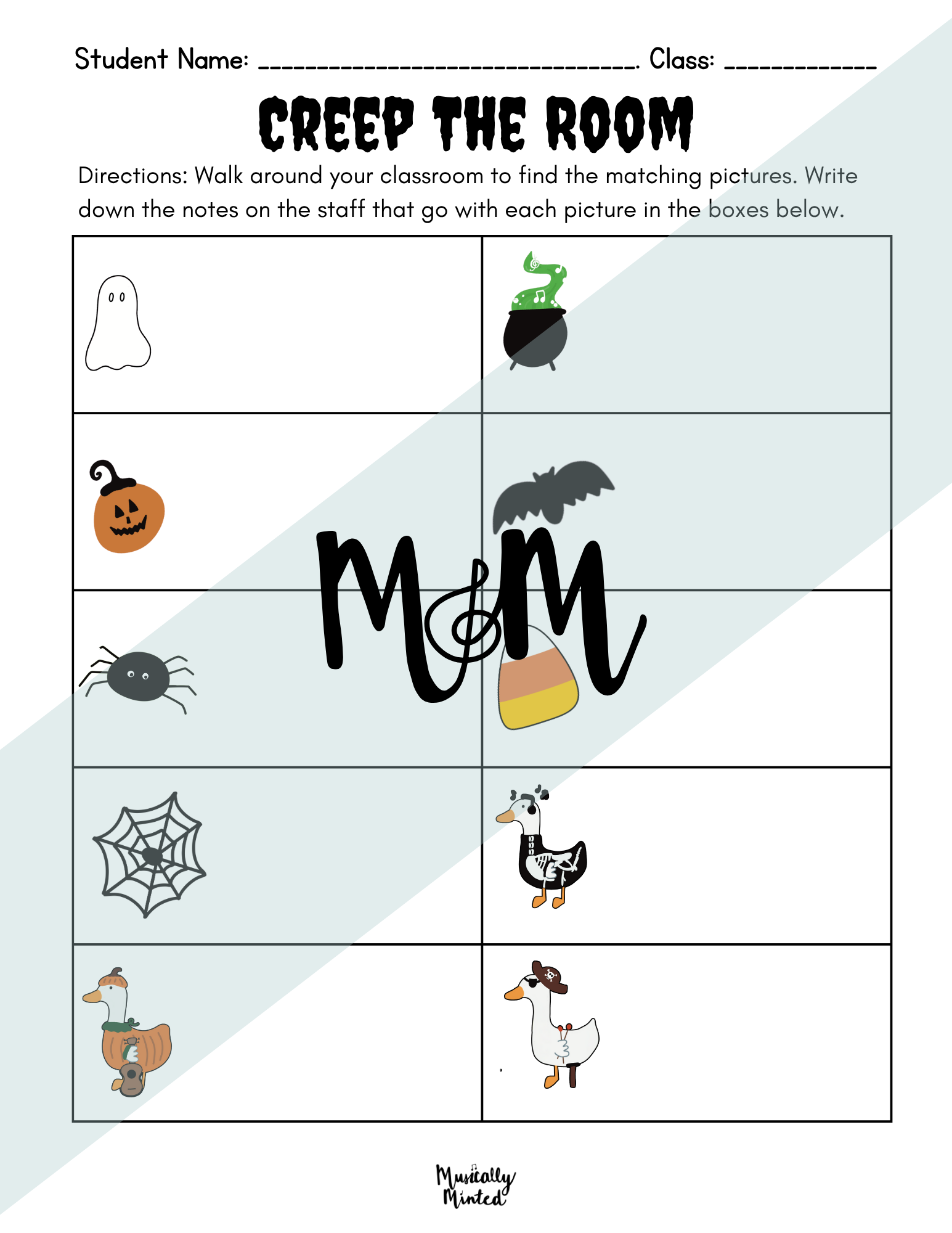 Halloween: Creep the Room | Treble Clef | Printable Music Activity DIGITAL DOWNLOAD