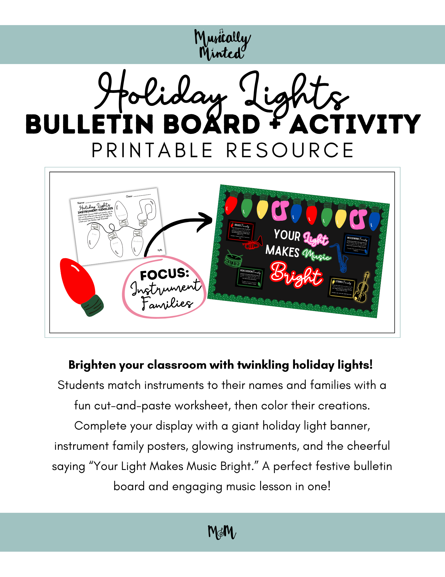 Bring a warm, festive glow to your music classroom with Musically Minted’s Holiday Lights Interactive Bulletin Board & Activity! This vibrant holiday-themed set helps students learn about instruments and their families while brightening your walls with cheerful, glowing designs that make your classroom shine all season long.