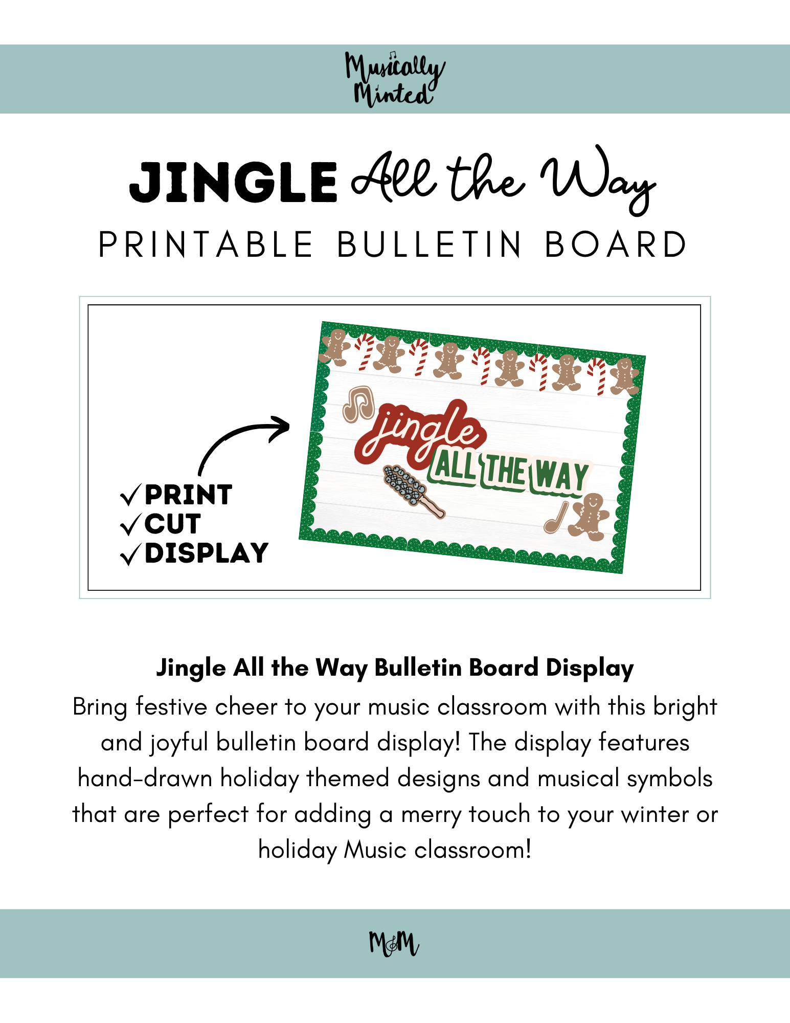 Celebrate the magic of the holiday season while keeping music at the heart of your classroom with this festive “Jingle All the Way” bulletin board display! Perfect for elementary and middle school music rooms, this cheerful set transforms your classroom into a winter wonderland filled with music, color, and seasonal fun.