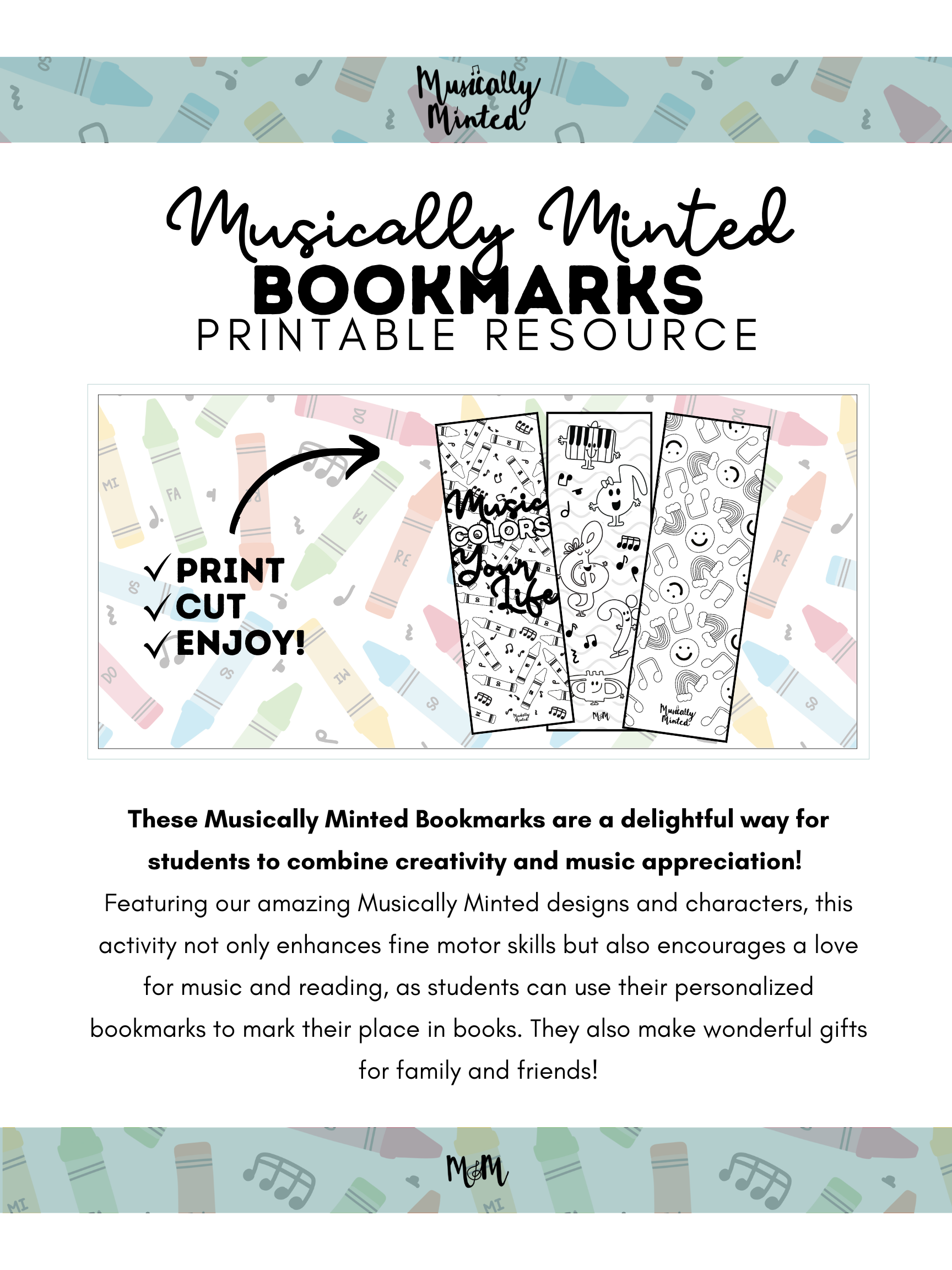 Featuring our amazing Musically Minted designs and characters, this activity not only enhances fine motor skills but also encourages a love for music and reading, as students can use their personalized bookmarks to mark their place in books. They also make wonderful gifts for family and friends!