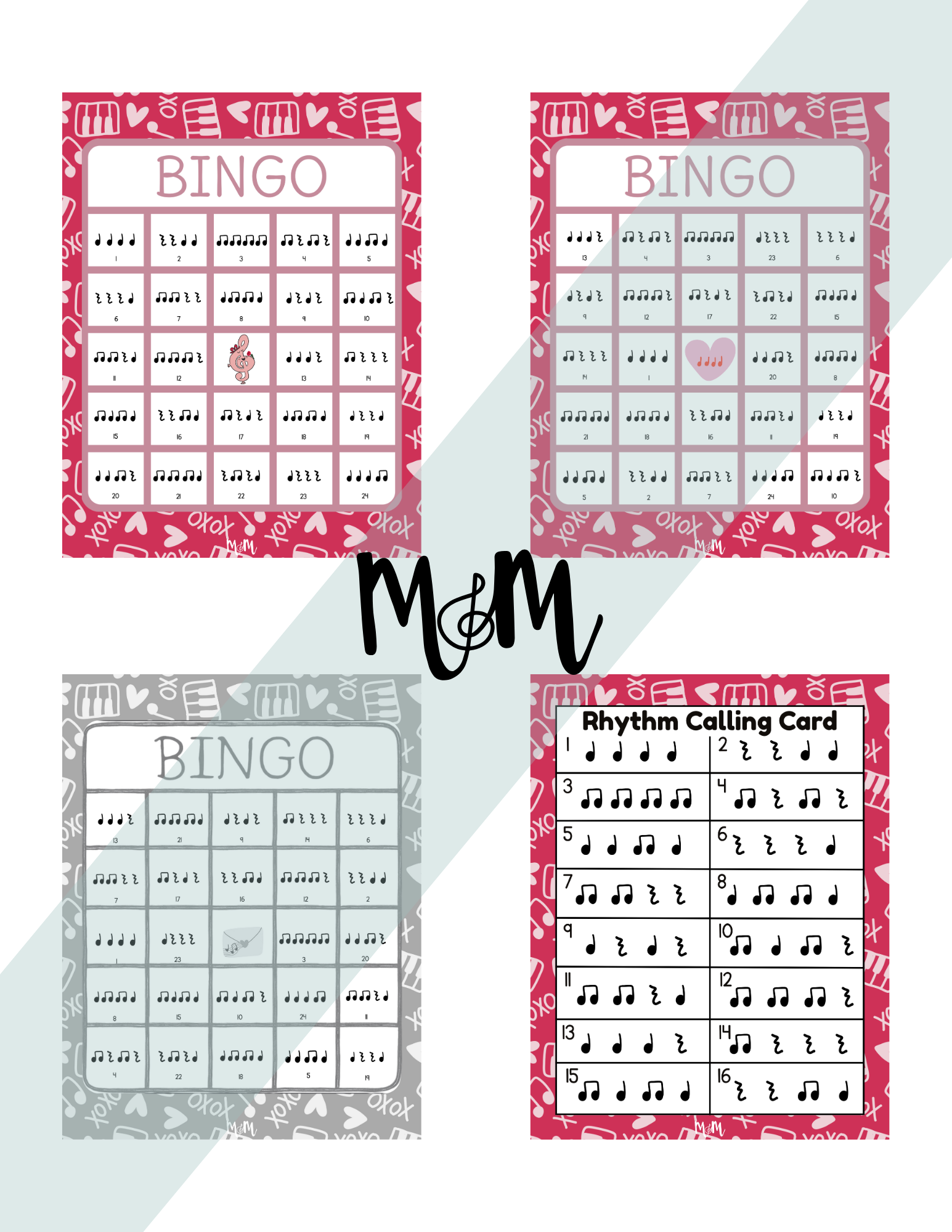 ❤️ Spread some love with Musically Minted’s Valentine Rhythm Bingo Game! This low prep, easy, print and go game is the perfect way to get celebrate while reinforcing rhythms with your students. With many musical and Valentine’s icons such as hearts, flowers, chocolate, xylophones, valentines, and more - this set brings Valentine charm to your lessons.