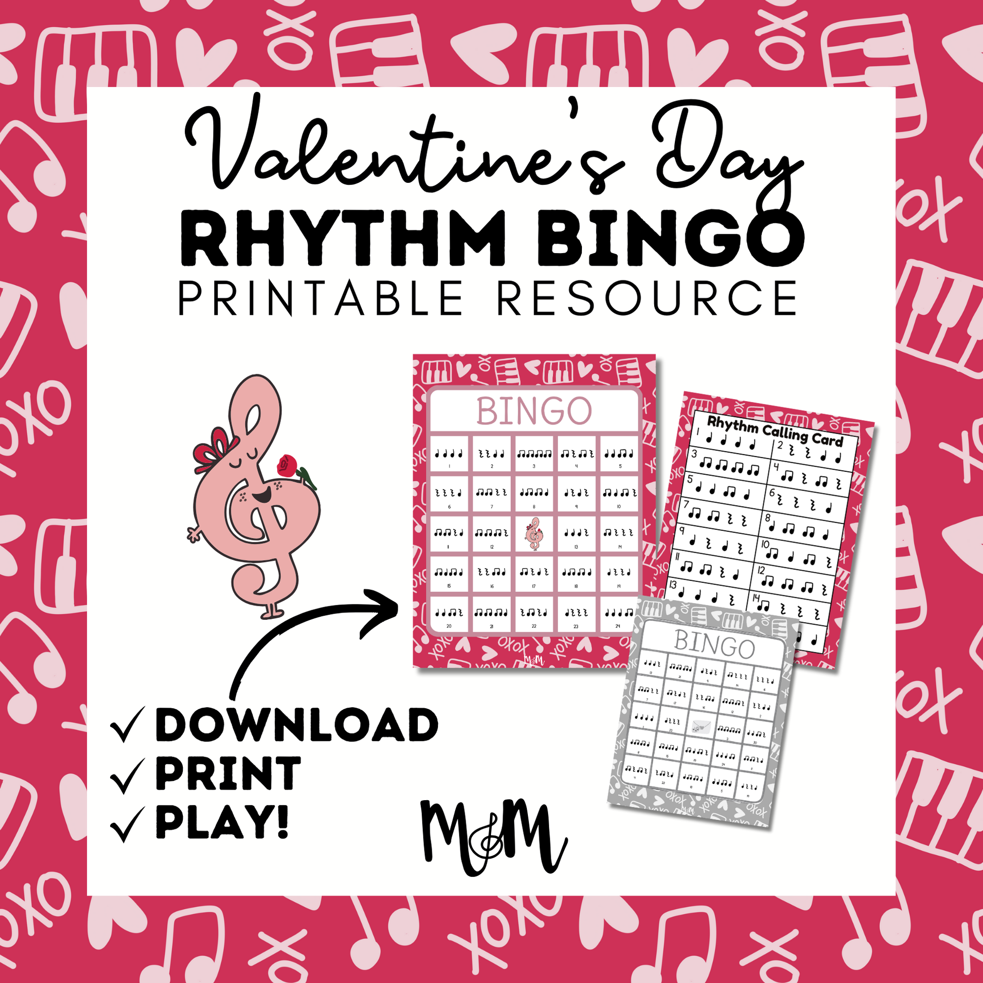 Valentines Day Rhythm Bingo | Printable Music Class Activity DIGITAL DOWNLOAD