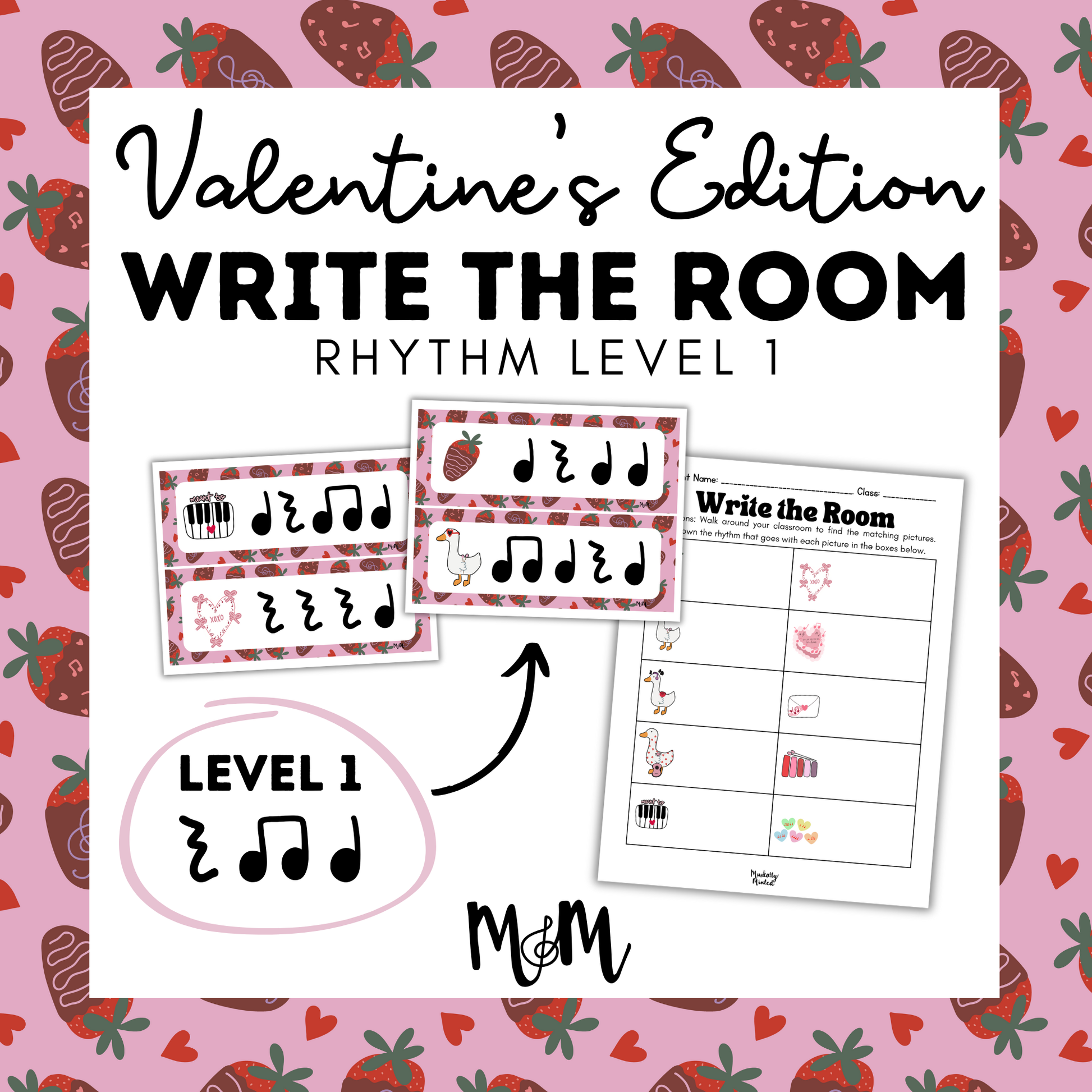 Valentines Day: Write the Room | Rhythm Level 1 | Music Activity | DIGITAL DOWNLOAD