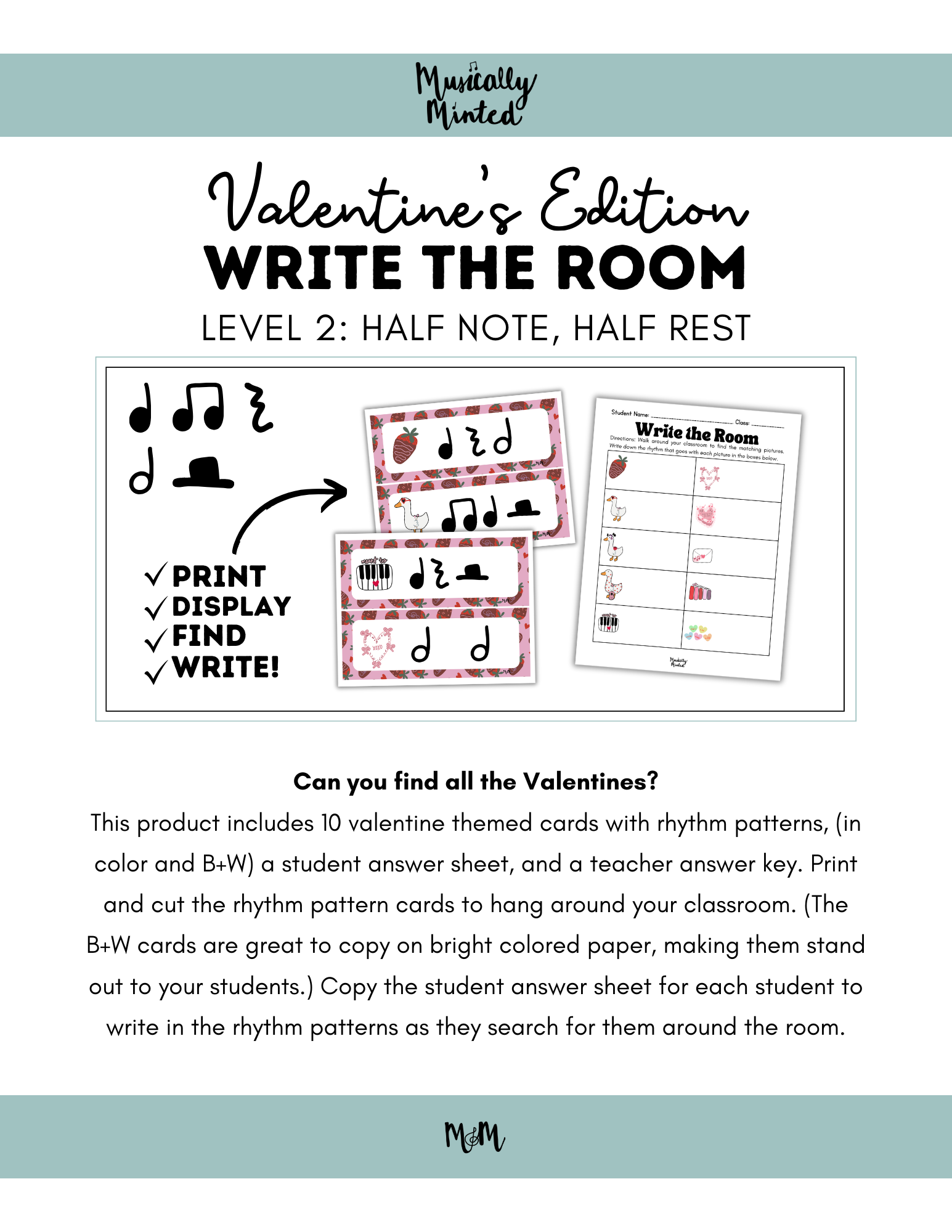 Valentines Day: Write the Room | Rhythm Level 2 | Music Activity | DIGITAL DOWNLOAD